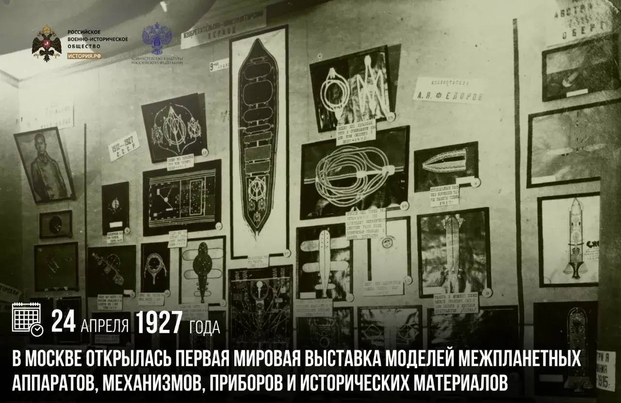 24 апреля 1927 года в Москве открылась Первая мировая выставка моделей межпланетных аппаратов, механизмов, приборов и исторических материалов