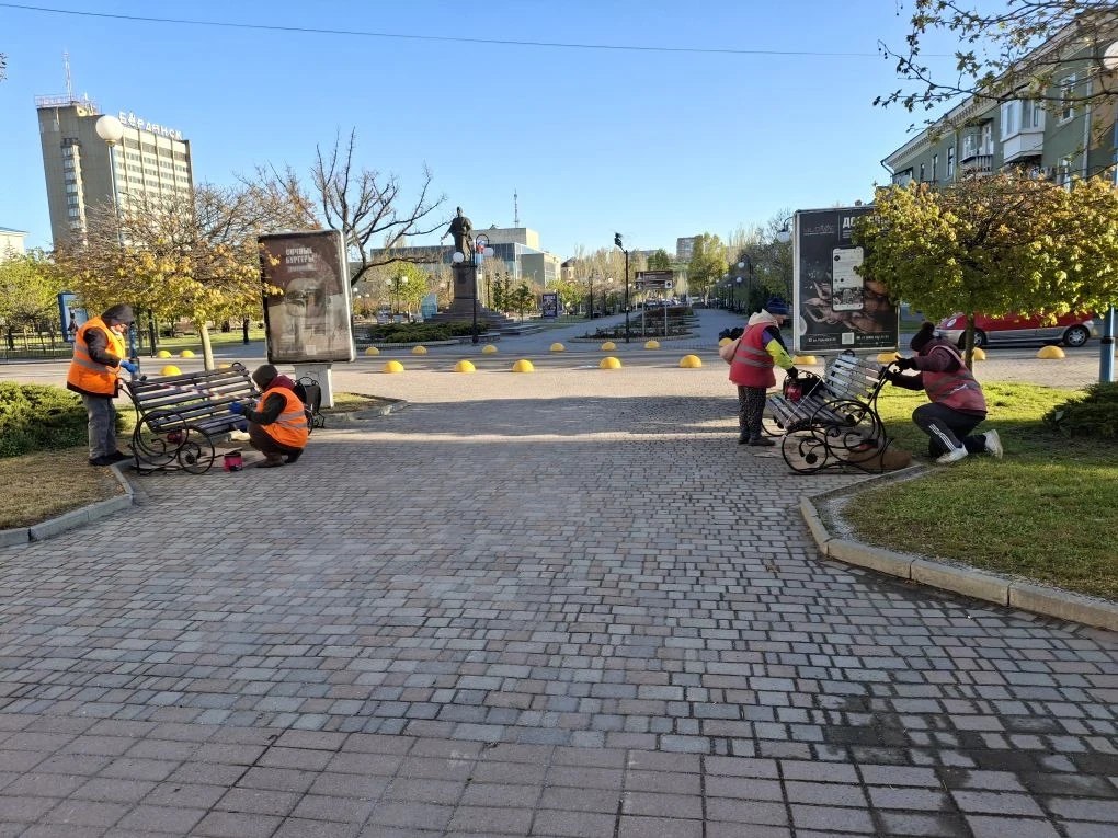Выполнена покраска скамеек на пр. Ленина, в сквере Пушкина.