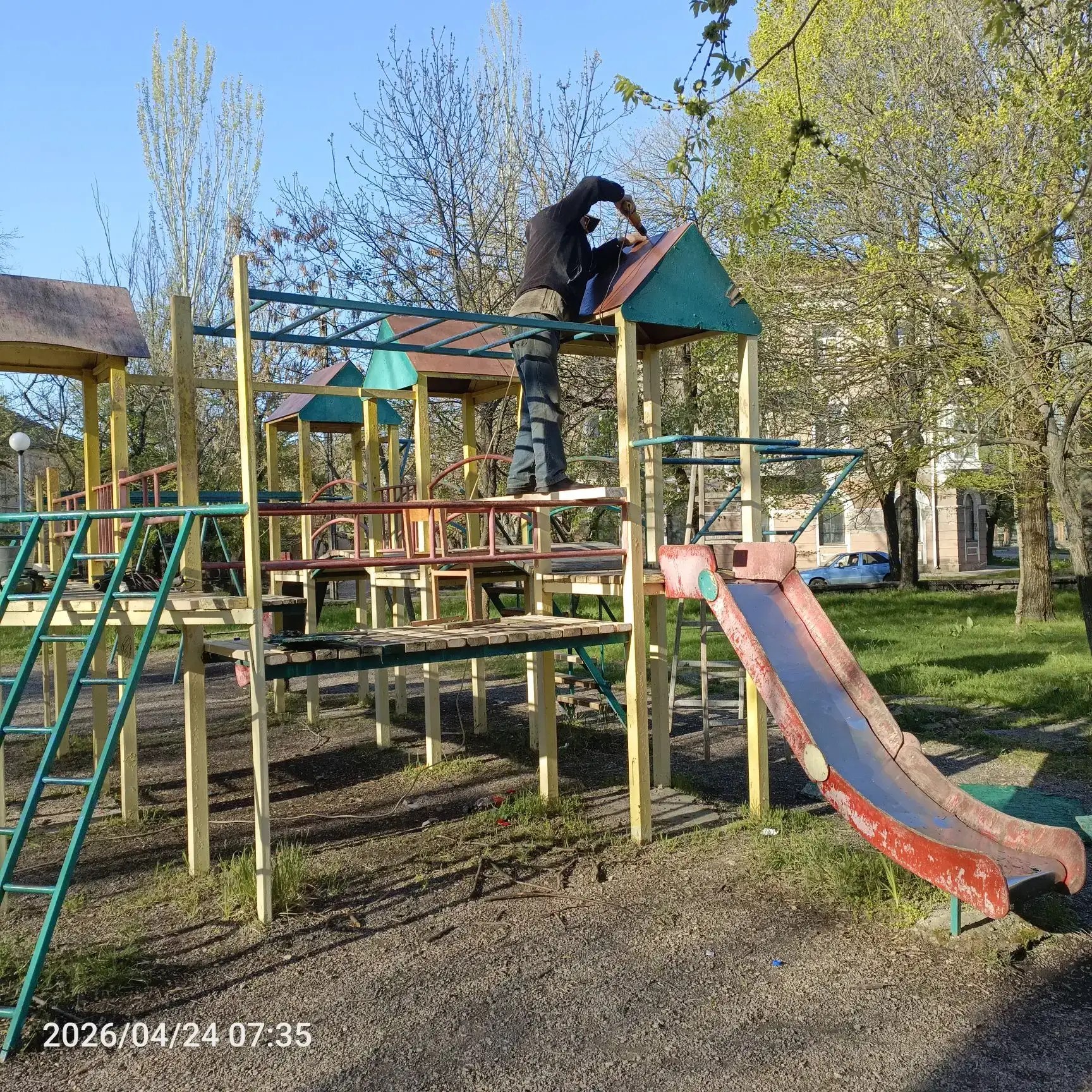 Произведен ремонт детской площадки в парке Шмидта.